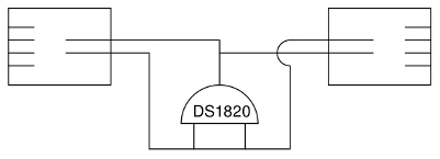 The first part of this is sensing the temperature. The hardware I use for this are some home built sensors based on the DS1820 sensor. You can generally find these sensors on ebay pretty cheaply (about $5.00 each including shipping). Below are a picture of the module I built along with a schematic. I had most of the parts laying around from other projects. A small perf board, a couple of RJ11 plugs normally used for keystone wall plates and some small guage wire to hook it all up. These are hooked, in series, by four wire phone wires, to a 1-wire serial adapter, which enables the sensor to be read on the serial port. This adapter is called a DS9097U-A which, compared to the sensors, are not that cheap: about $30. I have four of these sensors, one outdoors, one in my living room, one in my server room, and one in my crawlspace which has a tendency to get overly cold and freeze the pipes. Details of how they are built can be found at the digitemp website.